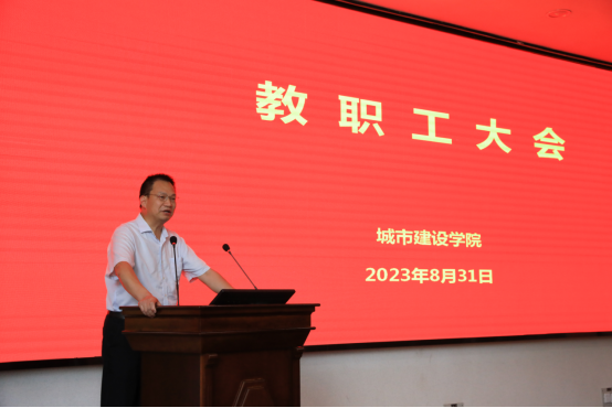 新学期,新气象。8月31日下午,tyc33455cc太阳成集团在东校区11教学术报告厅召开全体教职工大会。会议总结了暑假前后工作的进展,结合公司相关要求,对公司本学期工作做出部署。城市建设公司党委书记谌姿、副经理肖桃李、副经理黄向阳、党委副书记周洁如及tyc33455cc太阳成集团全体教职工出席参加本次会议,会议由公司党委书记谌姿主持。