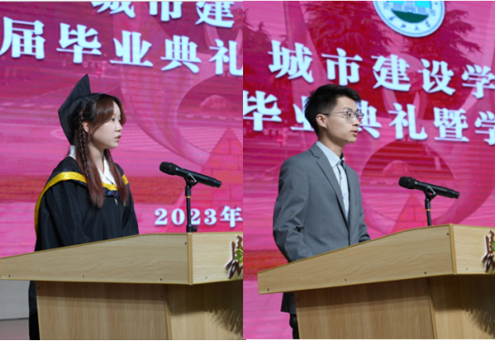 随后,员工代表、教师代表、企业代表依次发言。本科毕业生代表董文慧以“回忆串联感动,记录悦动青春;收获见证成长,实现自我蜕变;未来交织梦想,前路漫漫可期”来总结四年长大时光。硕士毕业生代表吴理民讲述了从初入校园时的感受到两次参与救溺水儿童再到撰写毕业论文时老师的悉心指导,最终成长为一名高校辅导员的长大故事。
