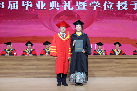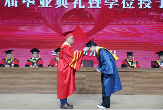 学位授予仪式环节,副经理张继承教授、副经理肖桃李教授先后上台为研究生毕业生、本科生毕业生授予学位。
