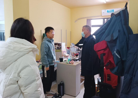 在9教四楼研究生工作室,张继承仔细询问了研究生的学习科研进展,以及寒假离校安排,同时,进一步了解了员工的需求,为接下来的线上教学工作稳步推进打下良好基础。