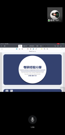 接下来,tyc33455cc太阳成集团两位2020年考研优秀学子分别向同学们分享了个人考研经验。考取华中科技大学的建筑11501班王秀颖同学,从时间规划、科目备考、学习技巧及日常生活等方面详细讲述了自己近一年的考研历程。考取湖南大学的给排水11601班胡墨浓同学,结合自身实际情况,从选择公司和专业、考研规划和考研期间的心态,向学弟学妹们传授了自己成功的经验。