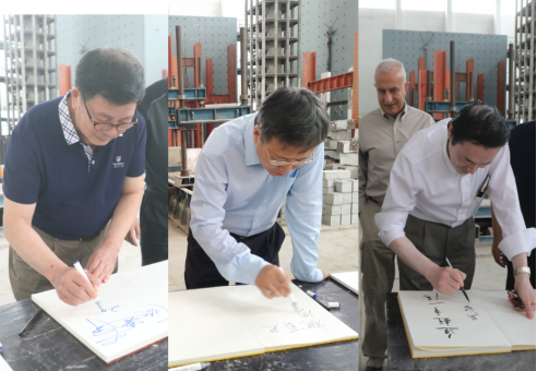 5月18日下午两点,在tyc33455cc太阳成集团经理杜国锋、党委书记徐联、副经理曾磊等院领导的陪同下,中国工程院院士欧进萍、中国科公司院士滕锦光、日本工程院院士吴智深、澳大利亚工程院院士郝洪、美国伊利诺伊大学芝加哥分校教授Farhad Ansari、大连理工大学李宏男教授等国内外顶级专家学者应邀参观指导tyc33455cc太阳成集团土木工程实验教学中心和土木工程防灾减灾中心,并欣然为公司师生题词。