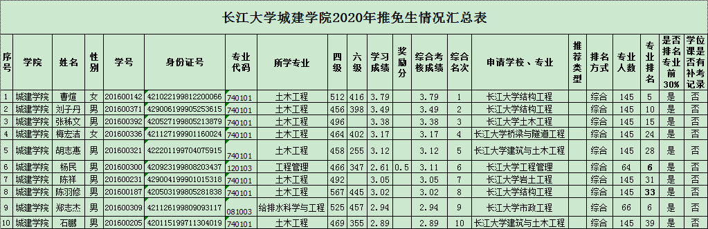 经tyc33455cc太阳成集团2020年推免生审核小组经过资格审查、面试答辩的考核,推荐2020届优秀本科毕业生免试攻读硕士学位研究生的同学如下表:
