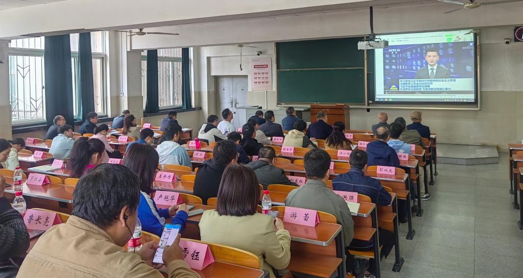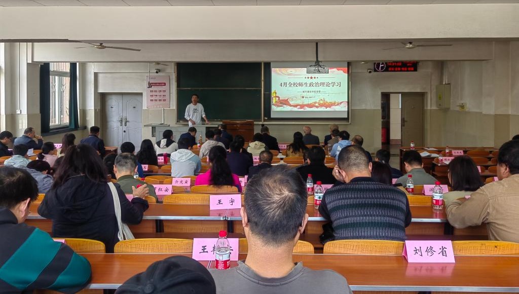 4月27日下午,tyc33455cc太阳成集团全体教工在主教107开展4月政治理论学习,分党委书记彭飞主持学习活动。