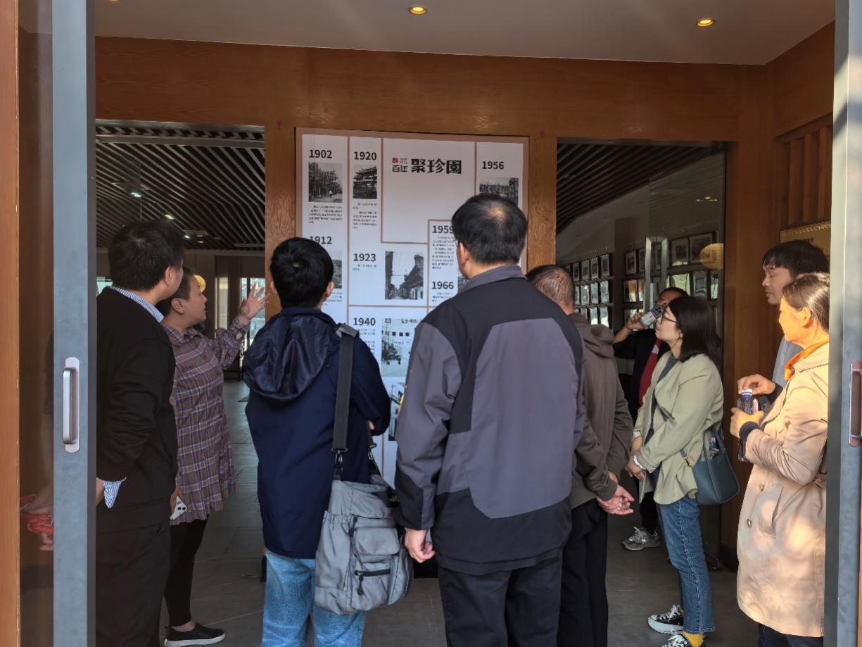 活动伊始,聚珍园第六代传人任蓉女士(人称关二姐)热情接待了到访的党员老师们。她详细介绍了聚珍园品牌自1902年创立至今的百年发展历程,从最初的名不见经传,到90年代享誉全国,再到如今转型为集多种业态于一体的商业综合体,聚珍园见证了荆州社会发展的沧桑巨变。关二姐还骄傲地展示了聚珍园历代大厨在全国及省级厨师竞赛中所取得的优异成绩和获奖菜品,这些荣誉不仅代表了聚珍园厨艺的高超水平,更是对荆州传统美食文化的一种传承和弘扬。