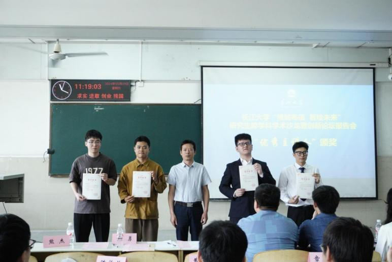 随后,tyc33455cc太阳成集团章德超、马乾坤,电信公司陈俊荣、曹熠程四位同学分别就《共面双裂隙砂岩力学性质及破坏特征的规律研究》;《井下动液面深度测量方法与仪器研究》;《掺加不同辅助胶凝材料橡胶混凝土高温后性能及超声评估研究》和学科竞赛相关经验依次做出分享。