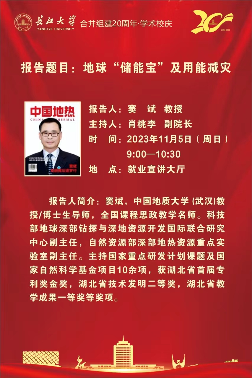 “长大20年”学术论坛暨长江城建讲坛(2023年第十七讲):地球“储能宝”及用能减灾