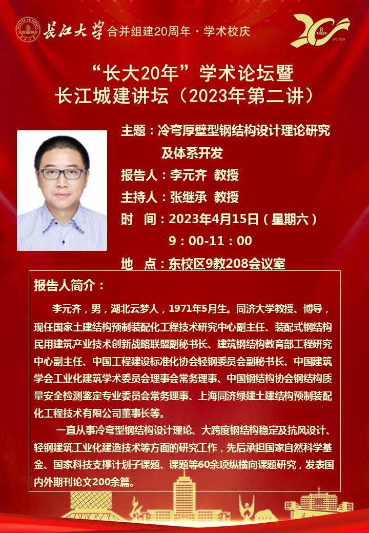 “长大20年”学术论坛暨长江城建讲坛(2023年第二讲):冷弯厚壁型钢结构设计理论研究及体系开发