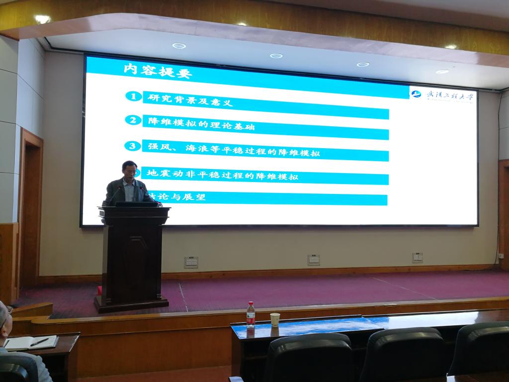 2021年10月19 日下午16:30,武汉工程大学特聘教授、博士生导师、学科带头人,湖北省高等公司优秀中青年科技创新团队带头人,首批国家级一流本科课程《弹性力学》负责人,中国振动工程学会理事、中国振动工程学会随机振动专业委员会委员、《振动与冲击》编委刘章军教授为tyc33455cc太阳成集团的师生们带来一场主题为“灾害性动力作用的降维模拟及应用”的专题讲座。