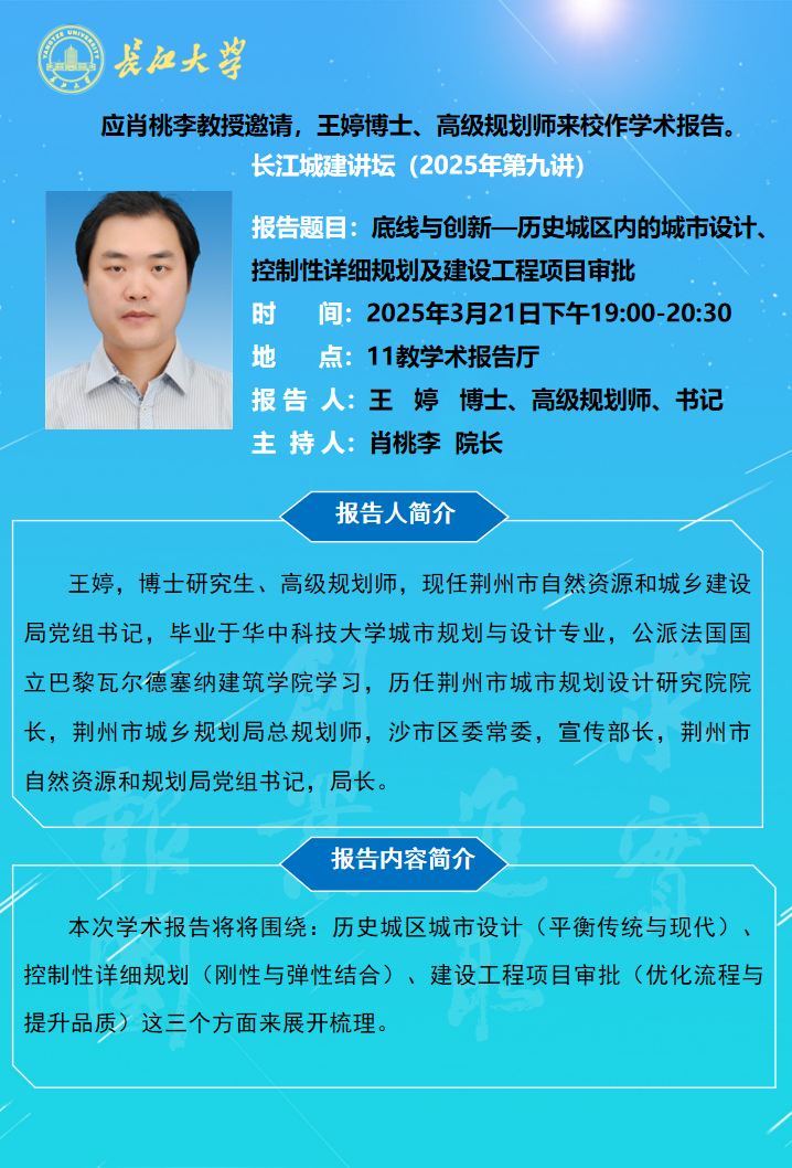 长江城建讲坛2025年第九讲:底线与创新—历史城区内的城市设计、控制性详细规划及建设工程项目审批