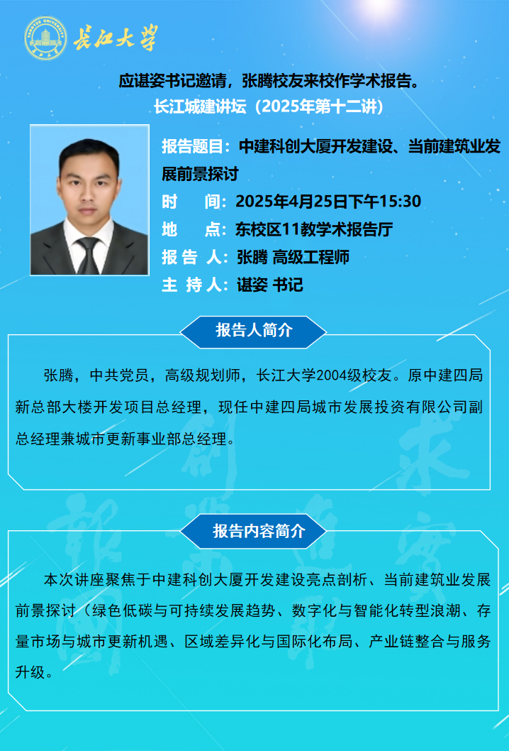 长江城建讲坛2025年第十二讲:中建科创大厦开发建设、当前建筑业发展前景探讨