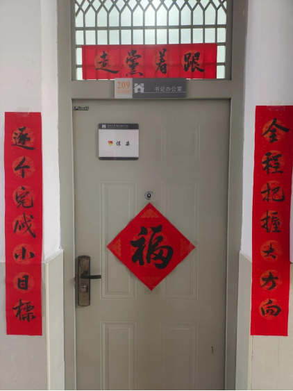 活动现场墨香四溢、气氛热烈,周国靖、张博雅、樊梦菲等同学凝神动笔、挥毫泼墨,将提前凝念好的祝福语书写于红纸之上。“全程把握大方向,逐个完成小目标”,横批“跟着党走”!这是公司党委书记谌姿在日常工作会议中一再强调的办学方针。“文章投哪哪都要,数据分析好到爆”,横批“科研顺利”,书法俊秀隽逸,对子整齐易懂,红纸黑字间饱含着对师生科研工作最淳朴的祝愿。待墨渍彻底干透后,同学们将数十幅对联及“福”字带到9号教学楼,仔细张贴于办公室门上及正门两侧,为老师和同学们送去新年祝贺与温暖,共同迎接新春的到来!