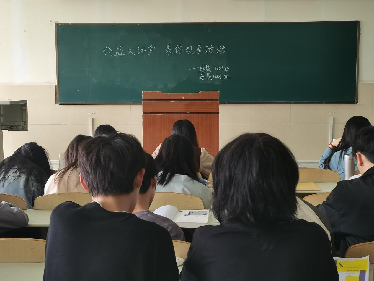 建筑12101班、建筑12102班同学在班长组织下集体观看《青年老员工应如何处理好与同学、老师、朋友之间的关系》公益讲座。祝老师幽默的话语、贴心的建议让同学们对于维持友好关系有了更深刻的理解,增进了师生间的情谊,提高了班级凝聚力。