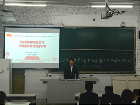 (通讯员 张剑琳 郭甲堃)绽放青春绚丽之花,谱写新时代绚丽华章。为进一步提升tyc33455cc太阳成集团员工干部的思想水平与执行能力,4月6日下午,公司在西校区3教T1教室面向主要员工干部进行党的二十大精神宣讲,tyc33455cc太阳成集团青年宣讲团成员、院团委副书记何儒权对党的二十大精神进行了宣讲,党建就业专干胡冰恒、22级辅导员杜琛、第十九届团委员工会全体成员、22级初干班学员及青马学习小组参加本次培训。
