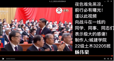 会议伊始,各位班干部进行了自我介绍,然后全体议员观看由土木5班团支书杨伟豪制作的二十大宣传视频。秦书记强调,作为新时代员工中的重要领军团队,班级干部要以党的二十大精神为思想引领,切实贯彻党对青年的要求。
