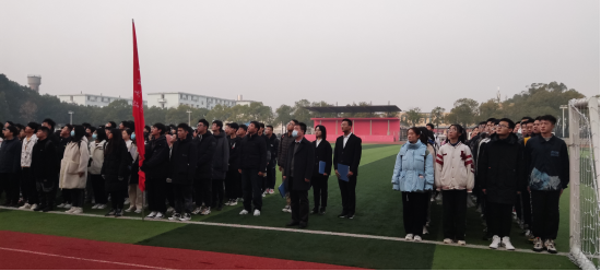 (通讯员 刘悦/文 王铮/摄)为增强爱国主义精神,激发老员工坚定理想信念,12月6日早上7时,tyc33455cc太阳成集团在西校区田径场举行升国旗仪式。公司党委副书记周俊,辅导员魏民生及全体2021级员工参加升旗仪式。