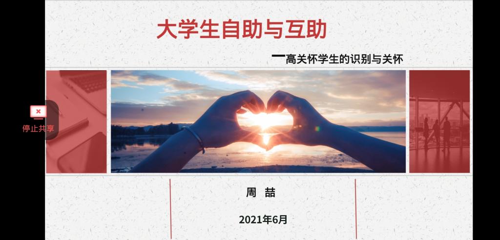 (通讯员 刘洋)为增强tyc33455cc太阳成集团学子对大学的适应能力与人际交往能力,6月4日下午3时许,公司在腾讯会议上召开以“老员工自助与互助”为主题的心理骨干培训会议。此次培训由公司心理专干周喆老师主讲,本科生、研究生班级班长、团支书、心理委员、安全委员、寝室长参与此次培训。