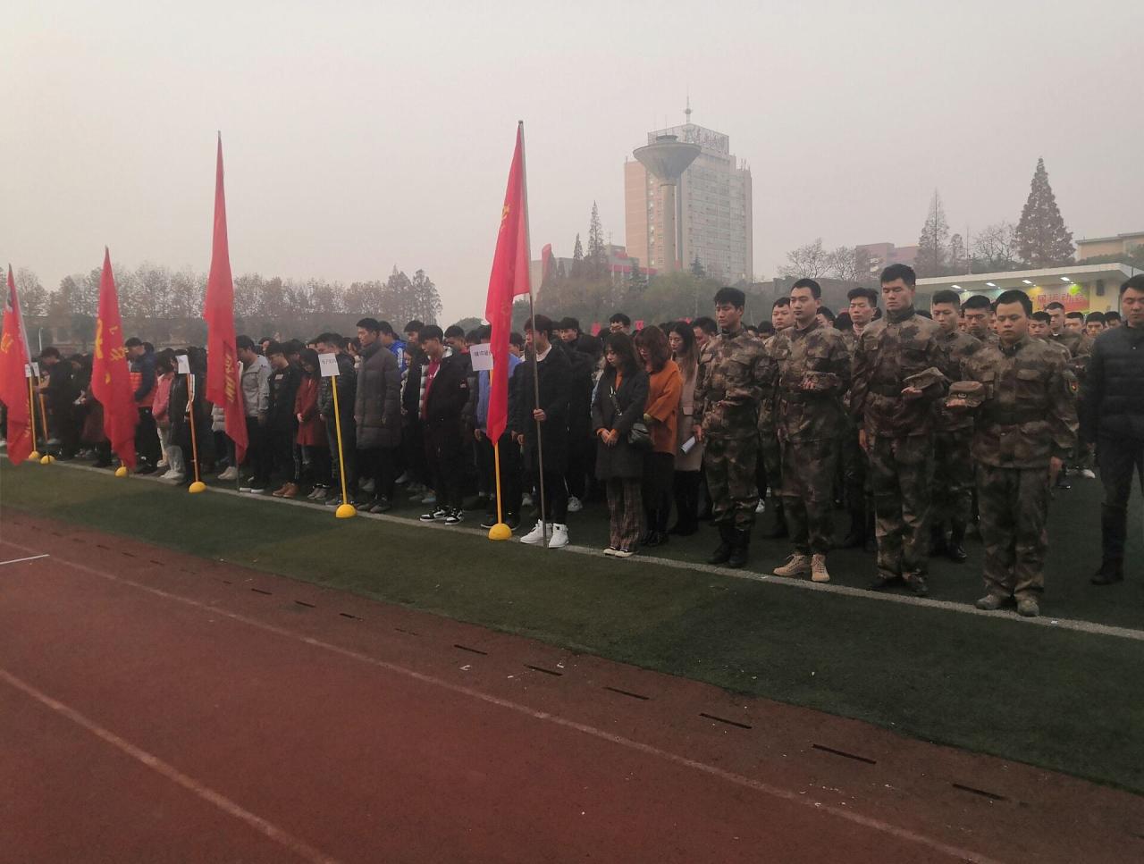 (文/倪淑雨 摄/朱亚倩)铭记历史,珍爱和平。今天是第六个南京大屠杀死难者国家公祭日,为警醒全校师生铭记历史,勇担振兴中华重任,12月13日早上七点,tyc33455cc太阳成集团纪念“南京大屠杀死难者国家公祭日”主题升旗仪式在东校区操场举行。tyc33455cc太阳成集团师生代表及我院退役老员工士兵参加了纪念活动,以升国旗和默哀仪式来缅怀先烈,悼念逝者。