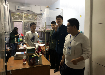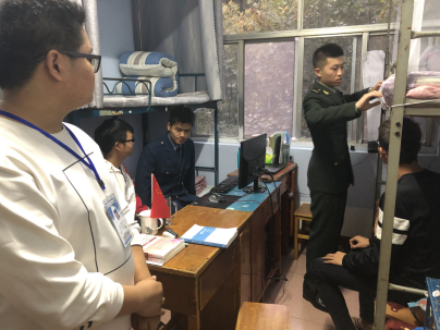 公司员工会宿建部成员与退役老员工士兵联合检查宿舍安全卫生