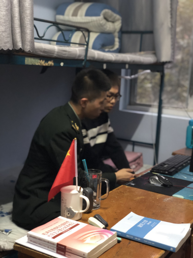 退役老员工士兵与学弟交流讲解解放军内务条令及物品摆放要求