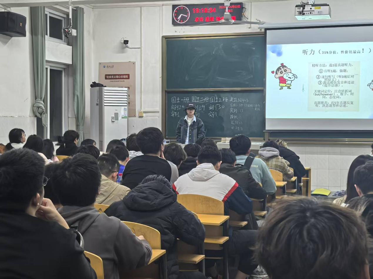 分享中,国土12301班徐梓焜聚焦听力、阅读、写作、翻译四大模块,通过典型例题剖析答题策略,精准定位高频失分点,提供专项突破方案。