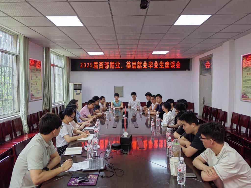 (通讯员 杜琛)6月12日上午,tyc33455cc太阳成集团在9教208会议室召开2025届西部就业、基层就业毕业生座谈会。公司党委副书记周洁如,2025届毕业生班主任黄庆瑞、吴小刚、郝勇、何云龙、刘流,辅导员魏民生、杜琛,以及31名即将奔赴西部、扎根基层的2025届毕业生以线上线下相结合的方式参会,会议由杜琛主持。