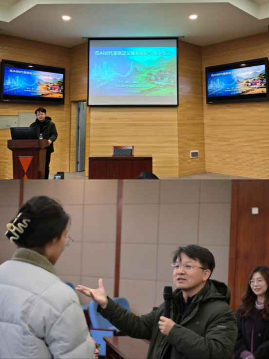 作为公司员工,乔杰以自身tyc33455cc太阳成集团求学经历为切入点拉近距离,更以深耕行业的专业积淀,提出“所有感受与经历的叠加,便是课程的核心意义”的观点,并从“城市是人类的未来”这一专业内核出发,深度解读城乡规划的核心内涵。针对AI技术发展带来的时代变革,乔杰引导新生找准自身价值,鼓励大家成为善用AI的城乡观察者与规划决策者。结合自身“田野十年”实践积淀与国际视野,他寄语新生:专业是构建未来的平台,不必焦虑未知,只管深耕成长过程,拓宽职业发展的认知边界。演讲结尾,乔杰老师细致回应三位同学的提问,让分享更具针对性与实操性。