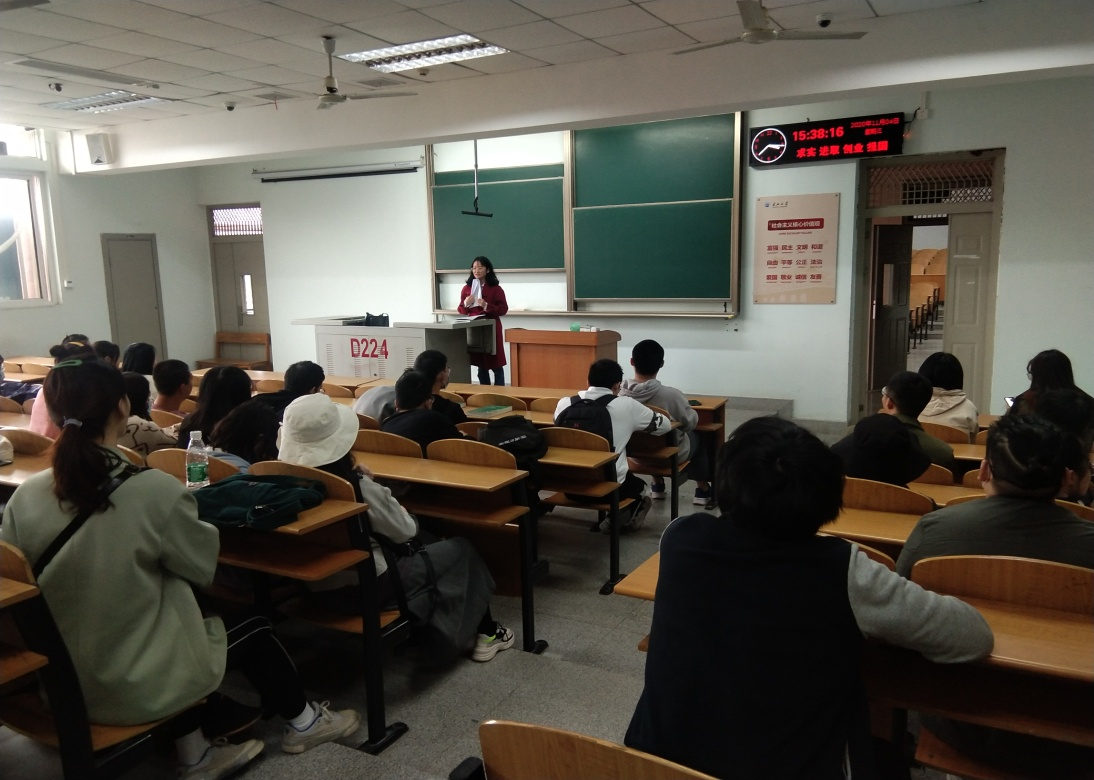 公司负责就业工作的胡冰恒老师在13教D224召集自己所带的两个毕业班级建筑11701、11702班召开“就业经验交流”主题班会。