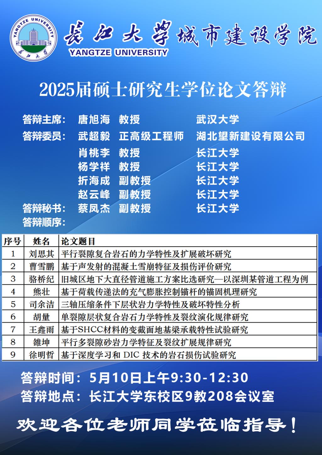 2025届硕士研究生学位论文答辩公告(一)